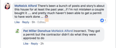 Maumee Division of Building, Inspection and Zoning employee Pat Miller Donohue stated on Facebook “Incorrect. They got a permit but the contractor didn’t do what they were approved to do.”