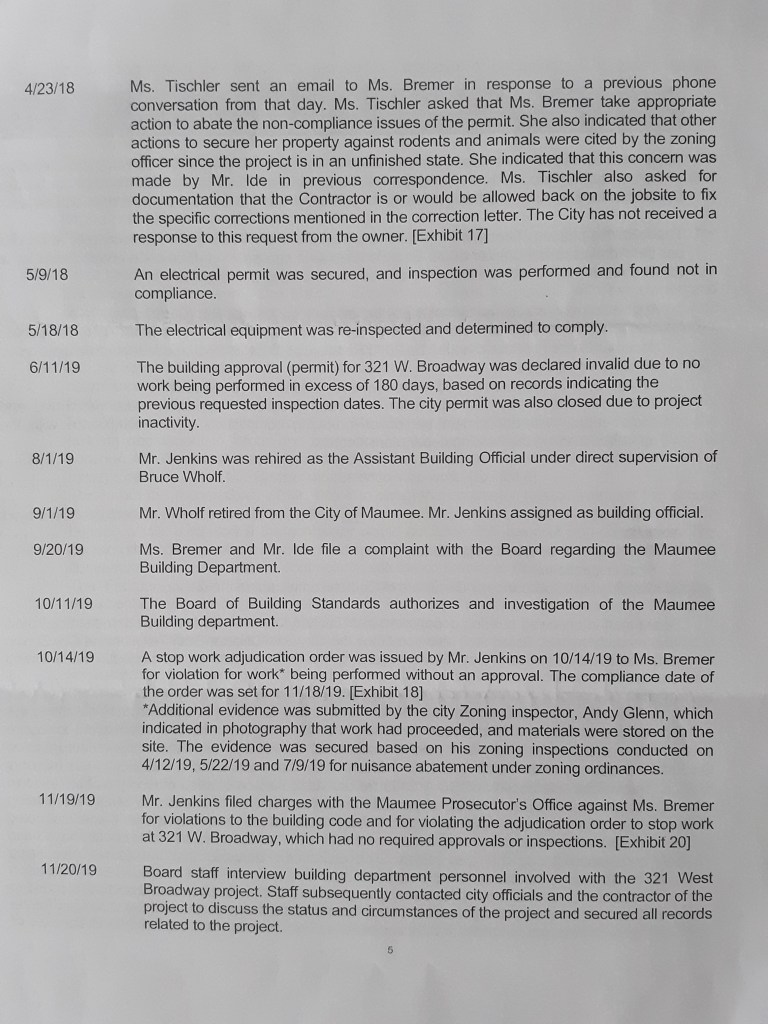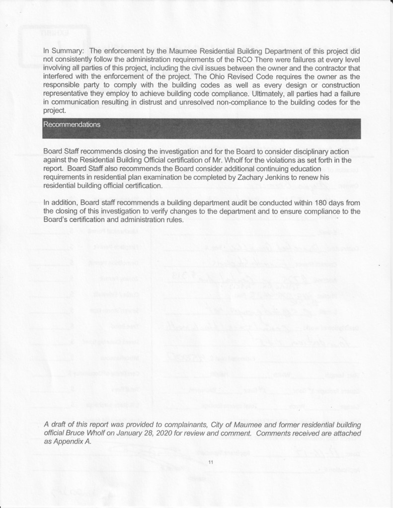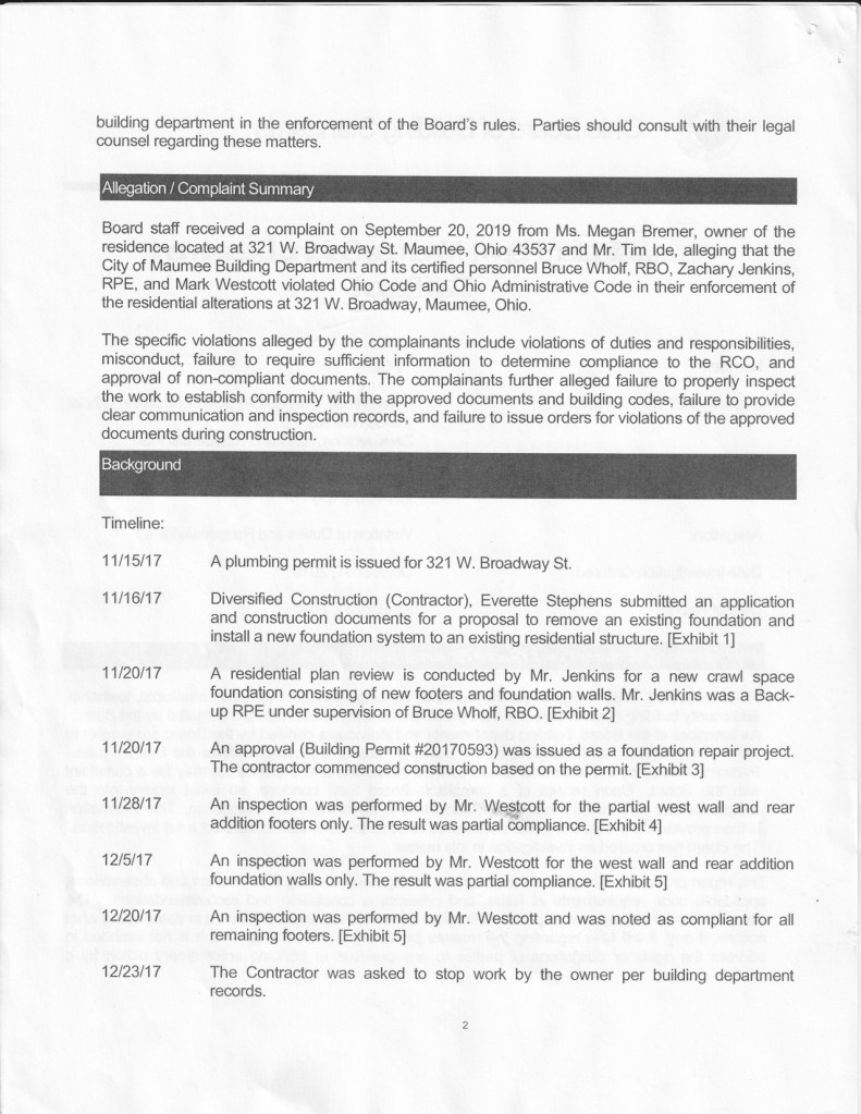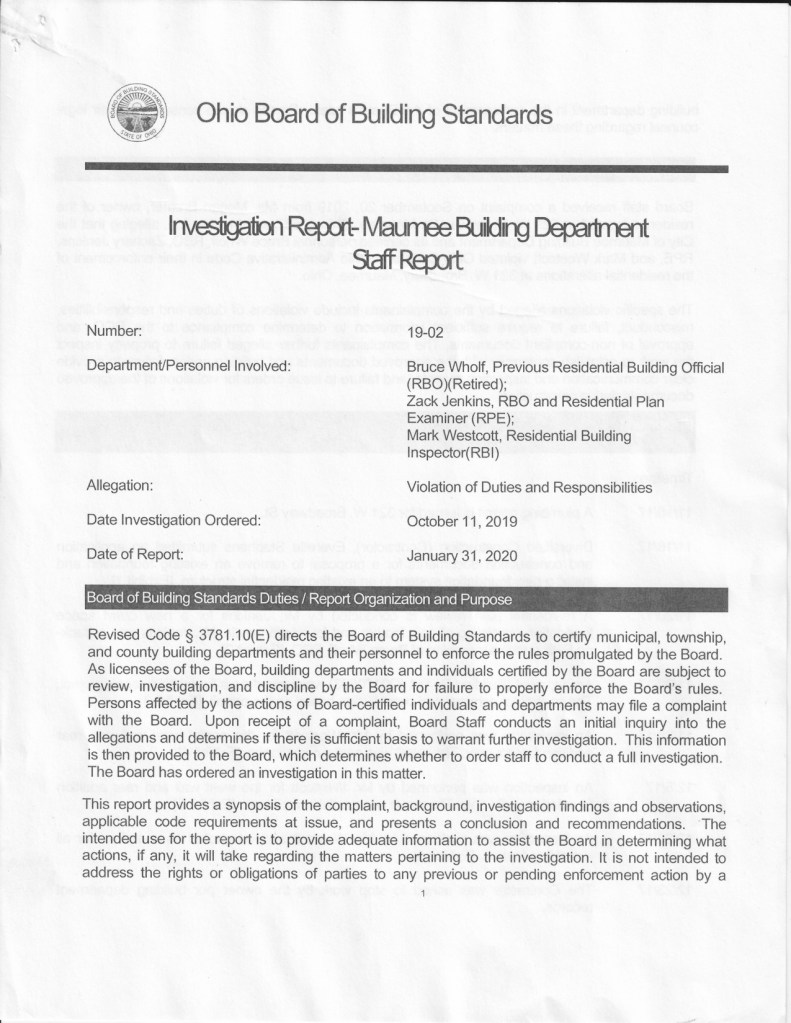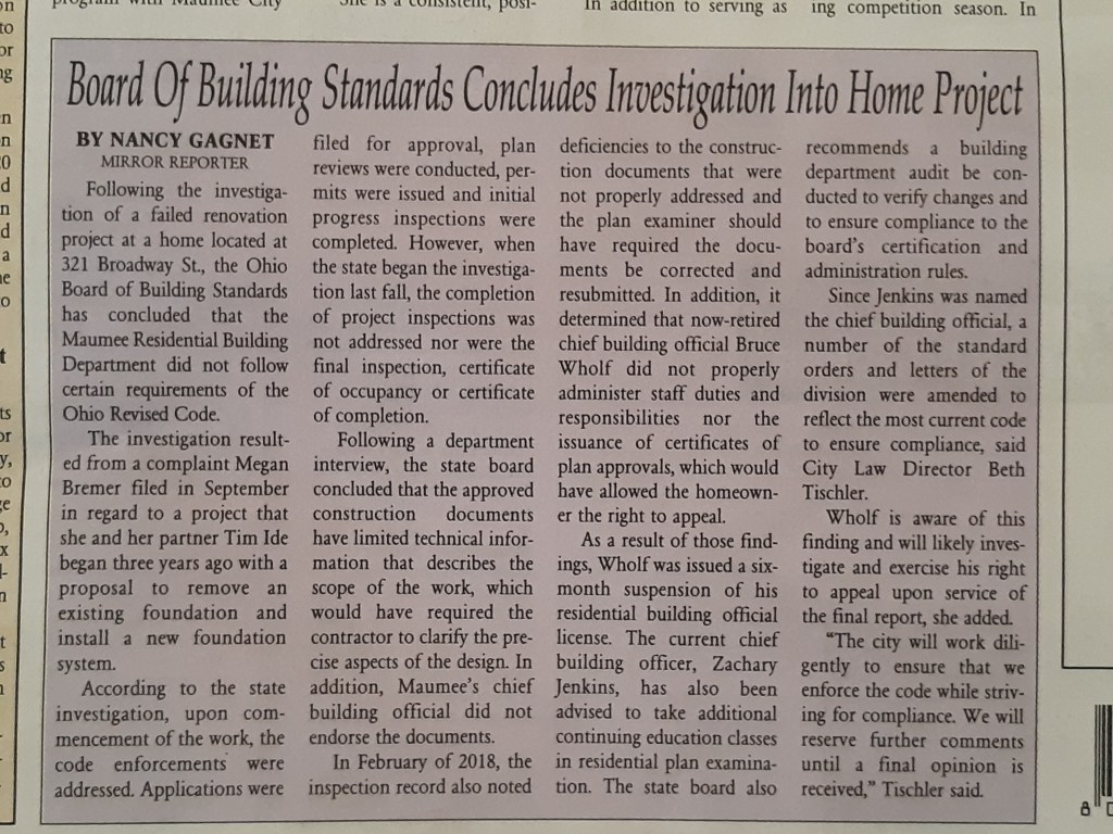 Article in The Maumee Mirror, “Board of Building Standards Concludes Investigation Into Home Project”.
