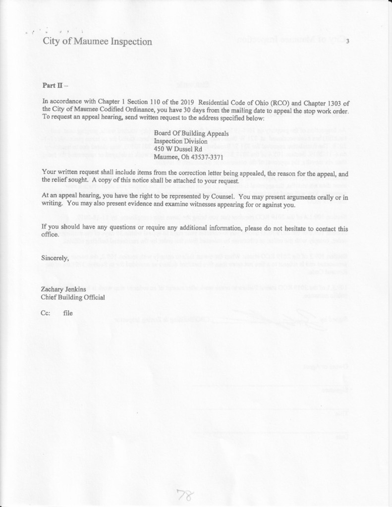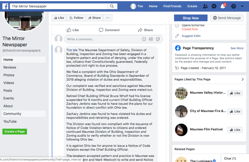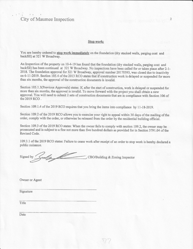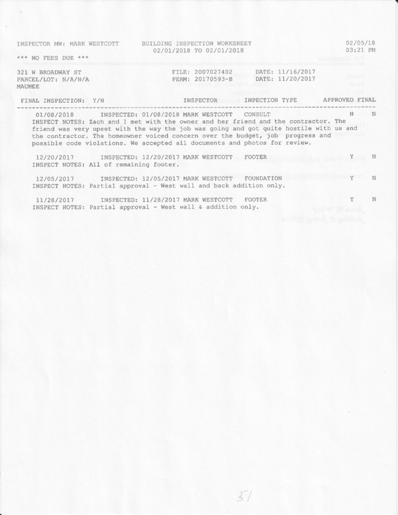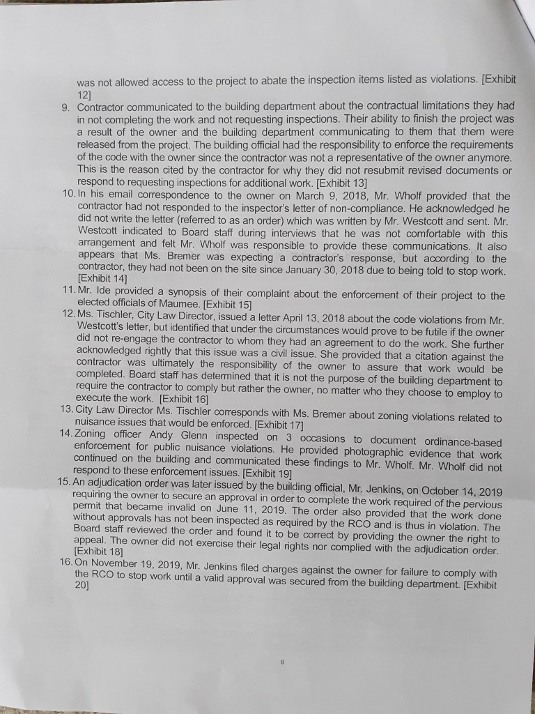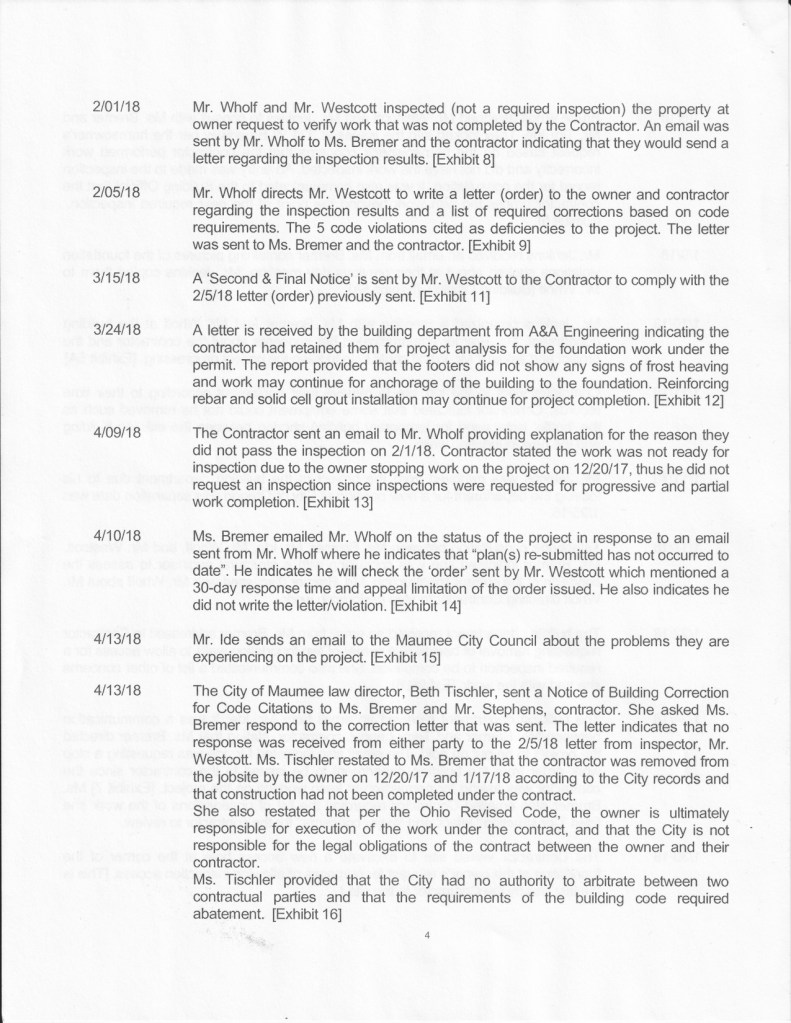 Article in The Maumee Mirror, “Board of Building Standards Concludes Investigation Into Home Project”.