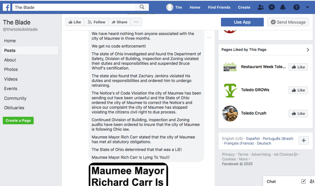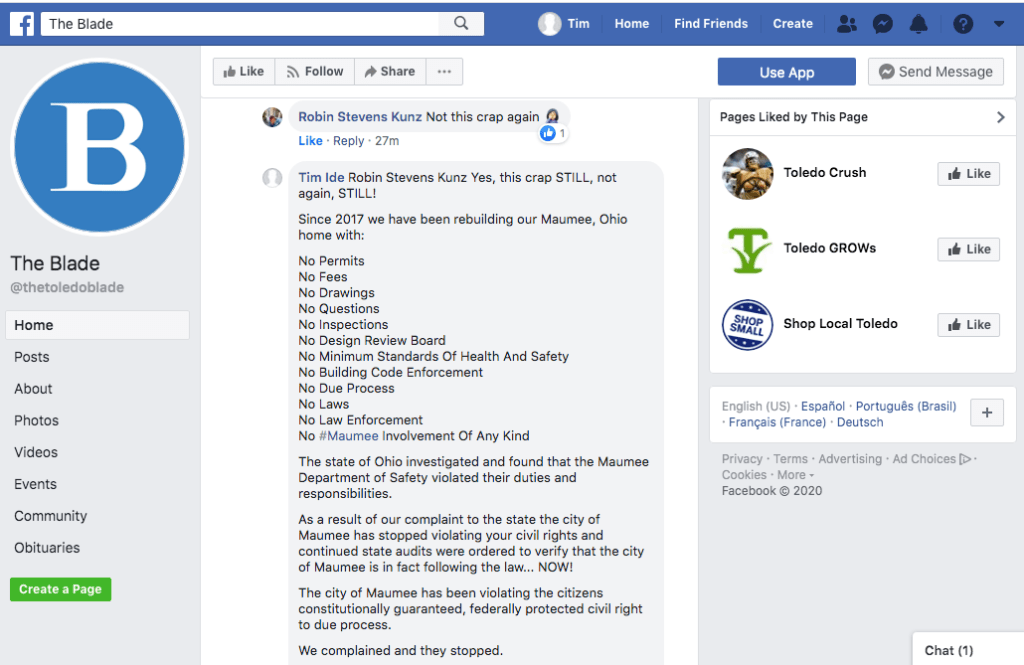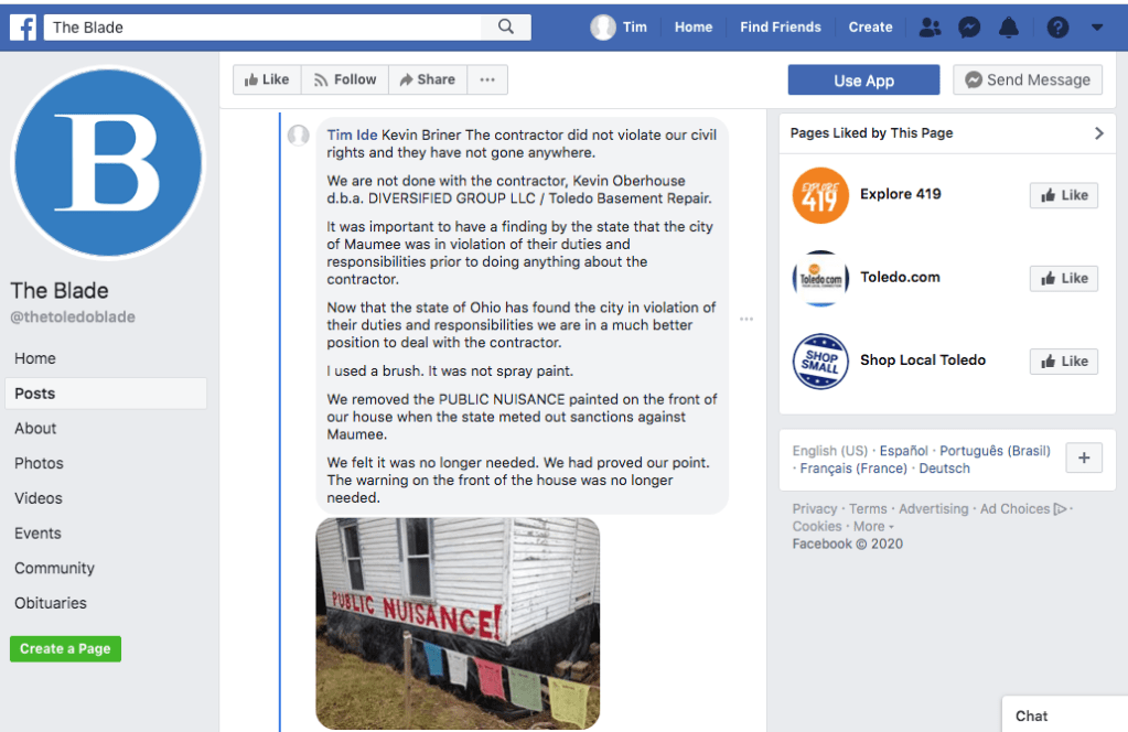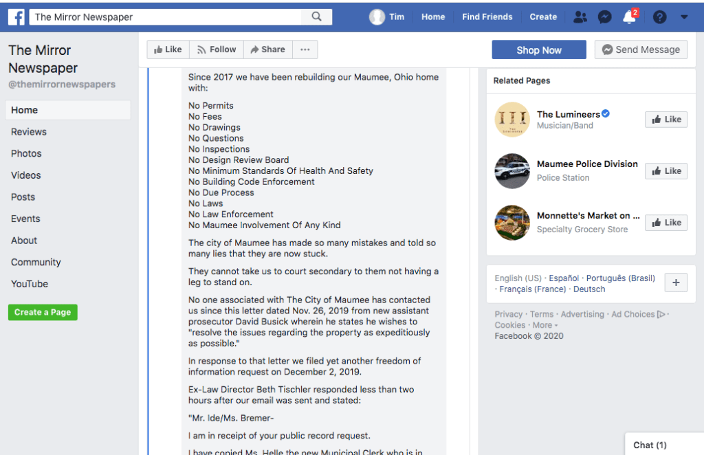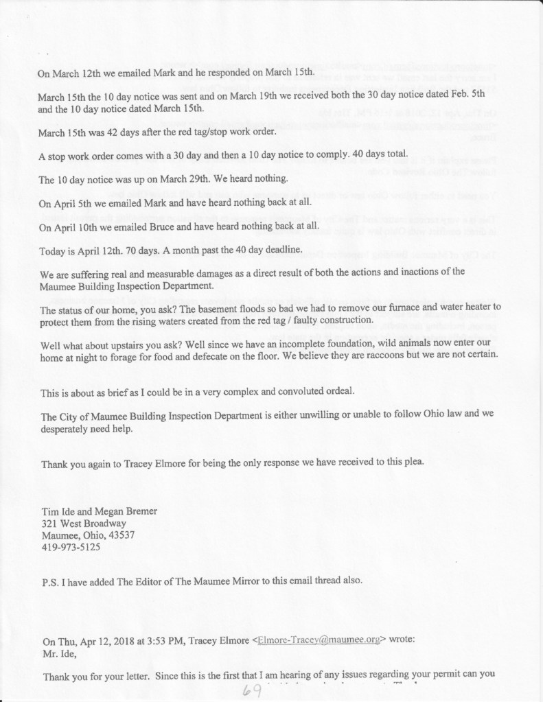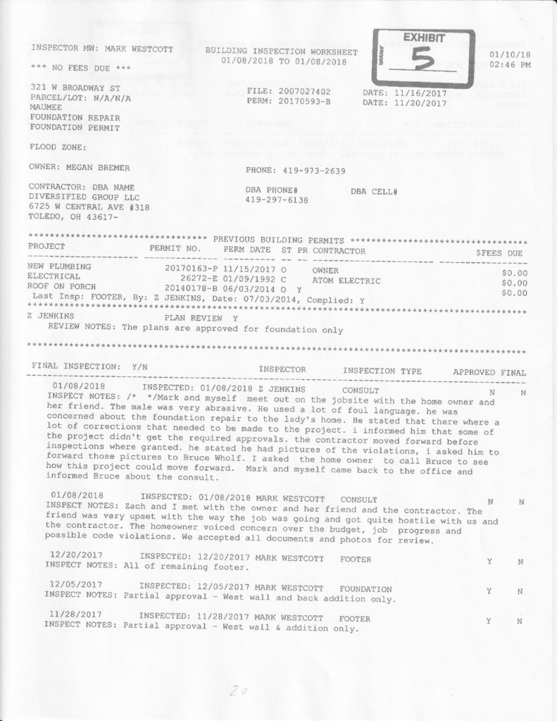 Article in The Maumee Mirror, “Board of Building Standards Concludes Investigation Into Home Project”.