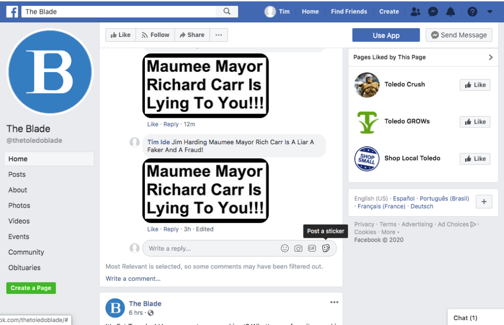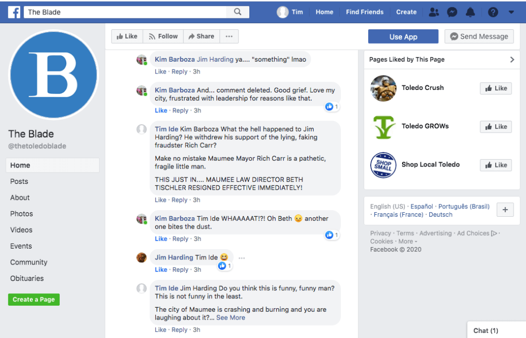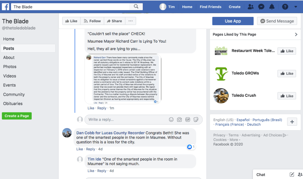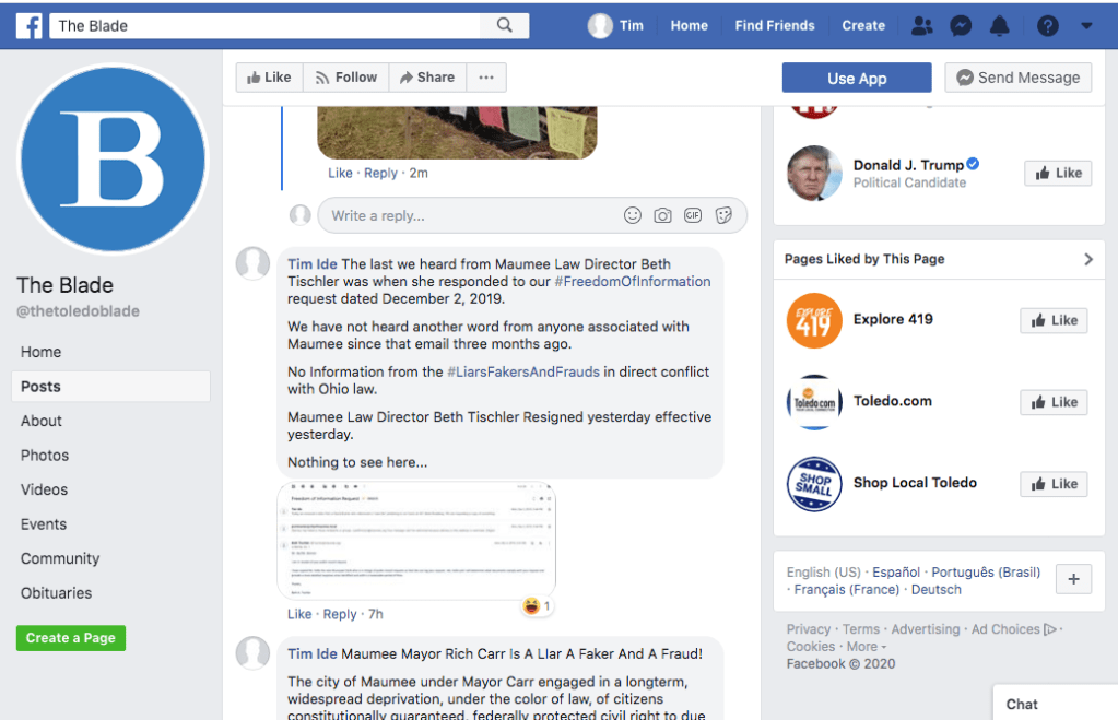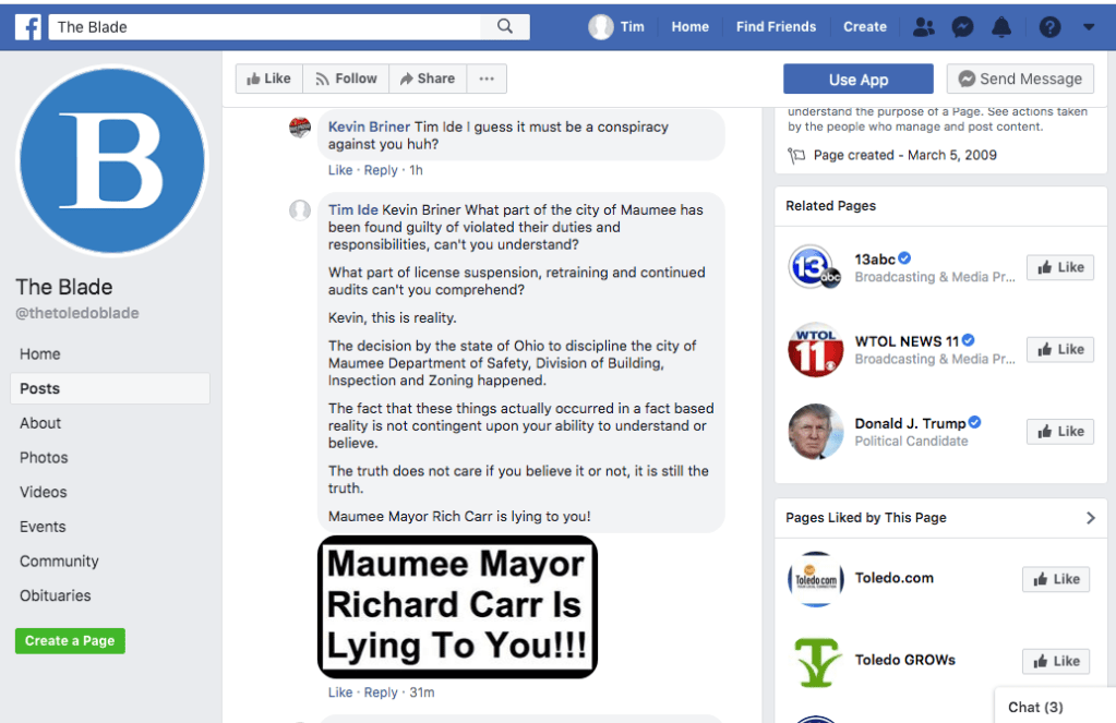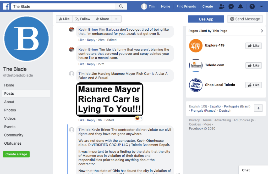 Screen Shot of posts on Facebook.
