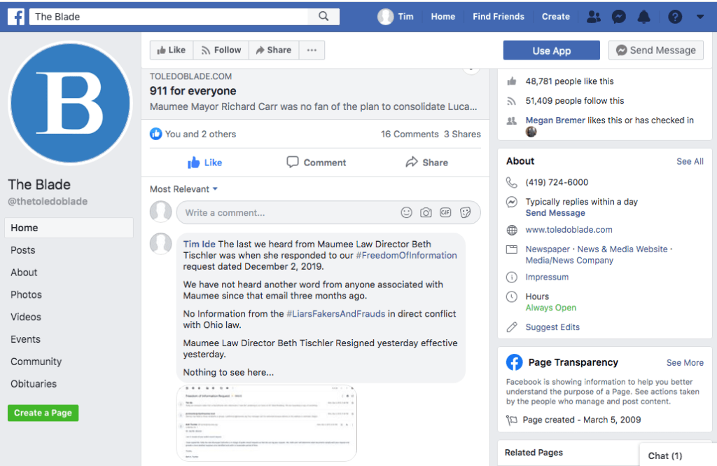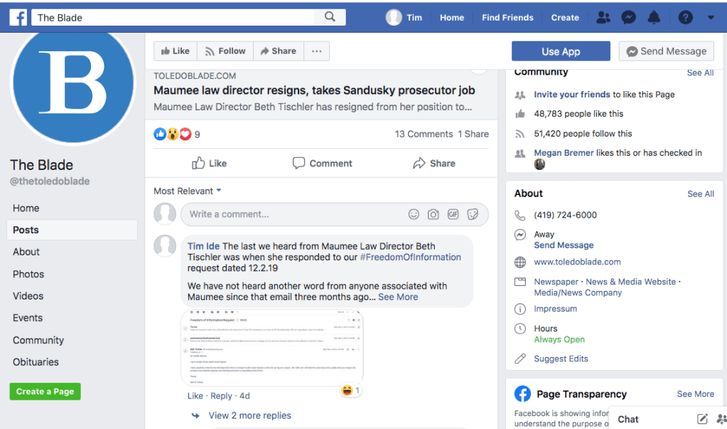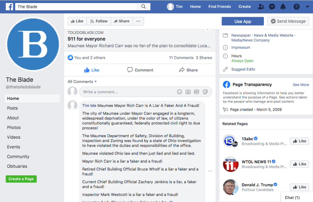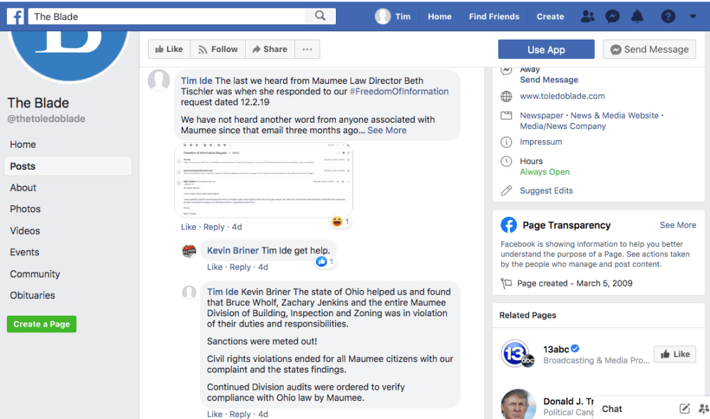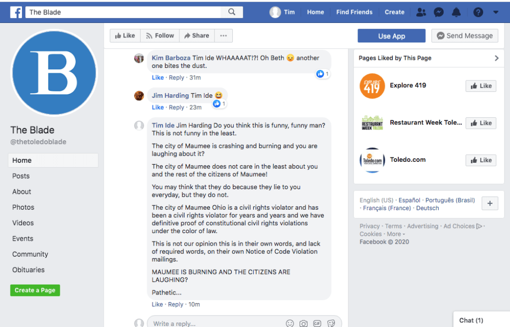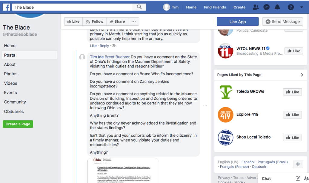Screen Shot of posts on Facebook.