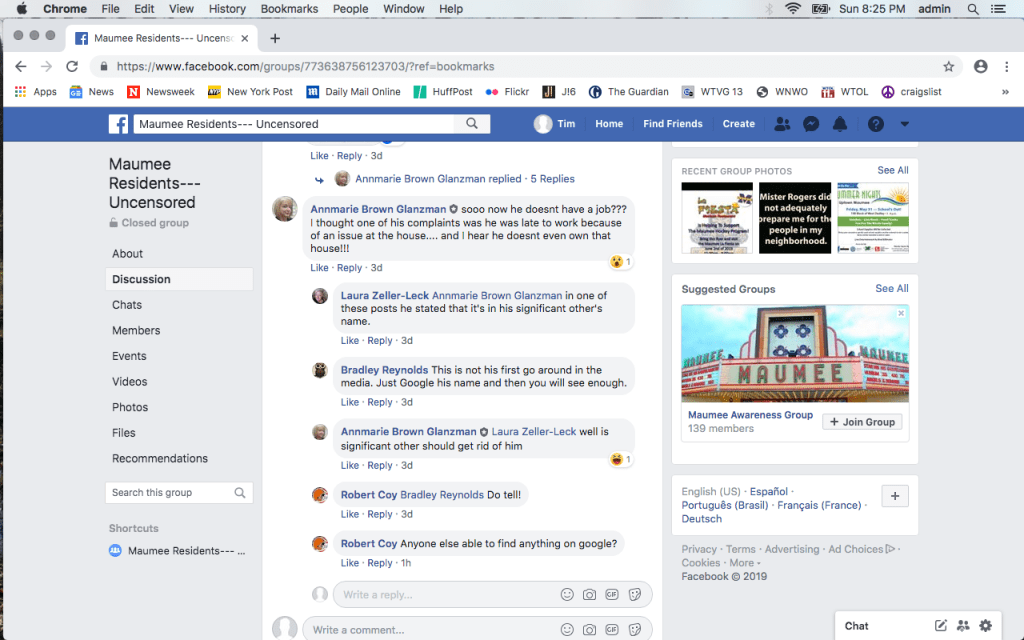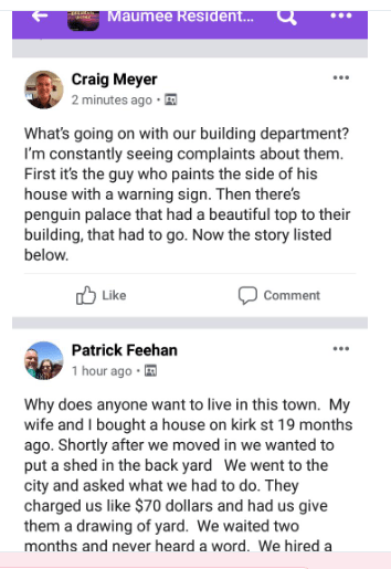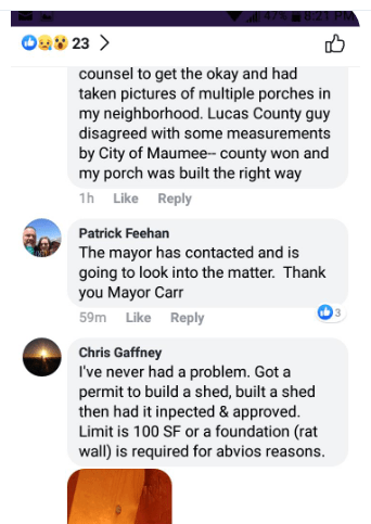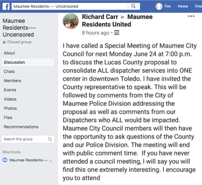 Screen Shot from closed Facebook group Maumee Residents— Uncensored.