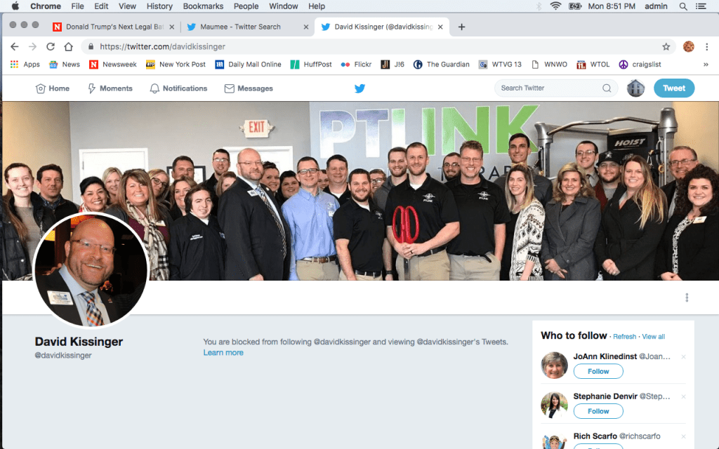 Blocked on Twitter by Maumee councilman David Kissinger.