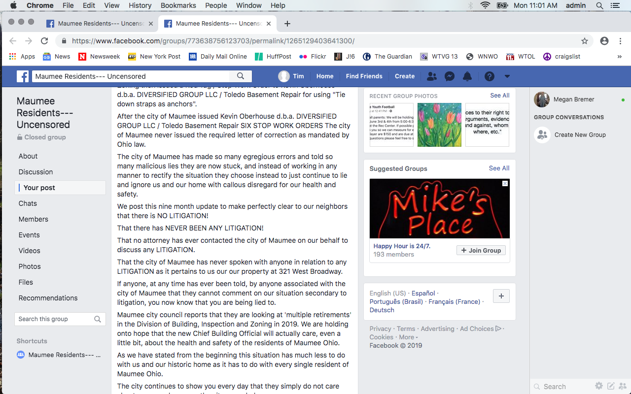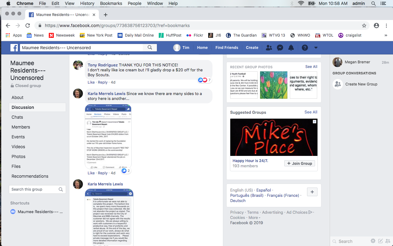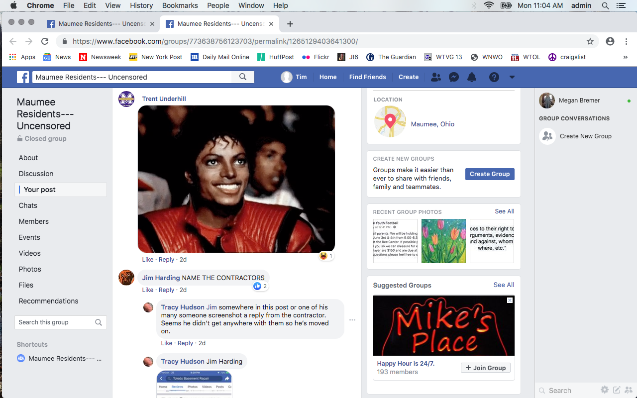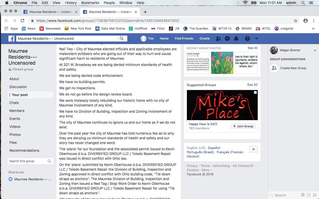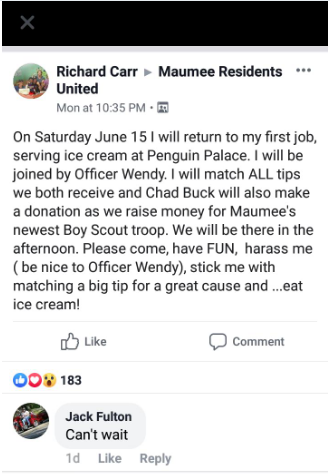 We posted in the closed Facebook group Maumee Residents— Uncensored.