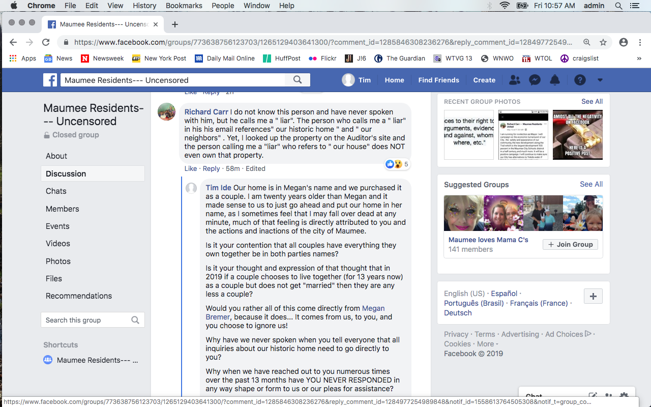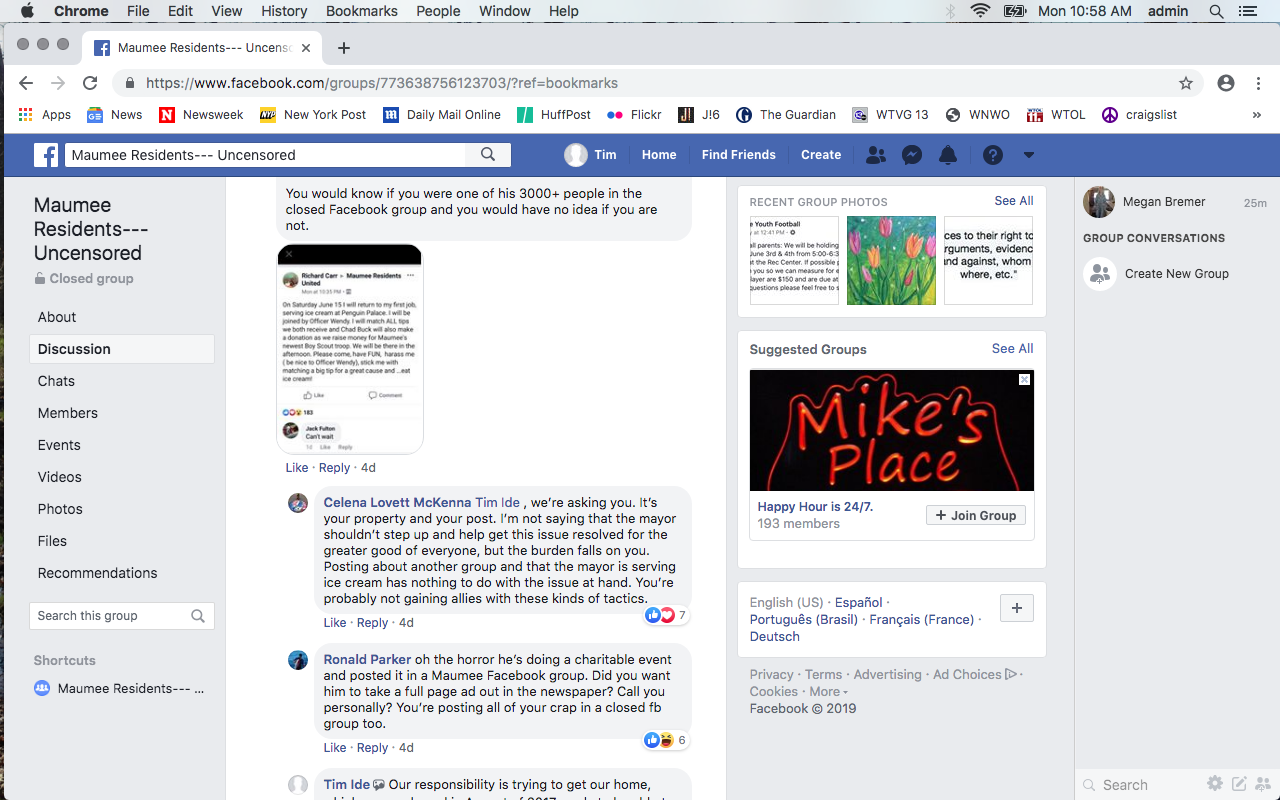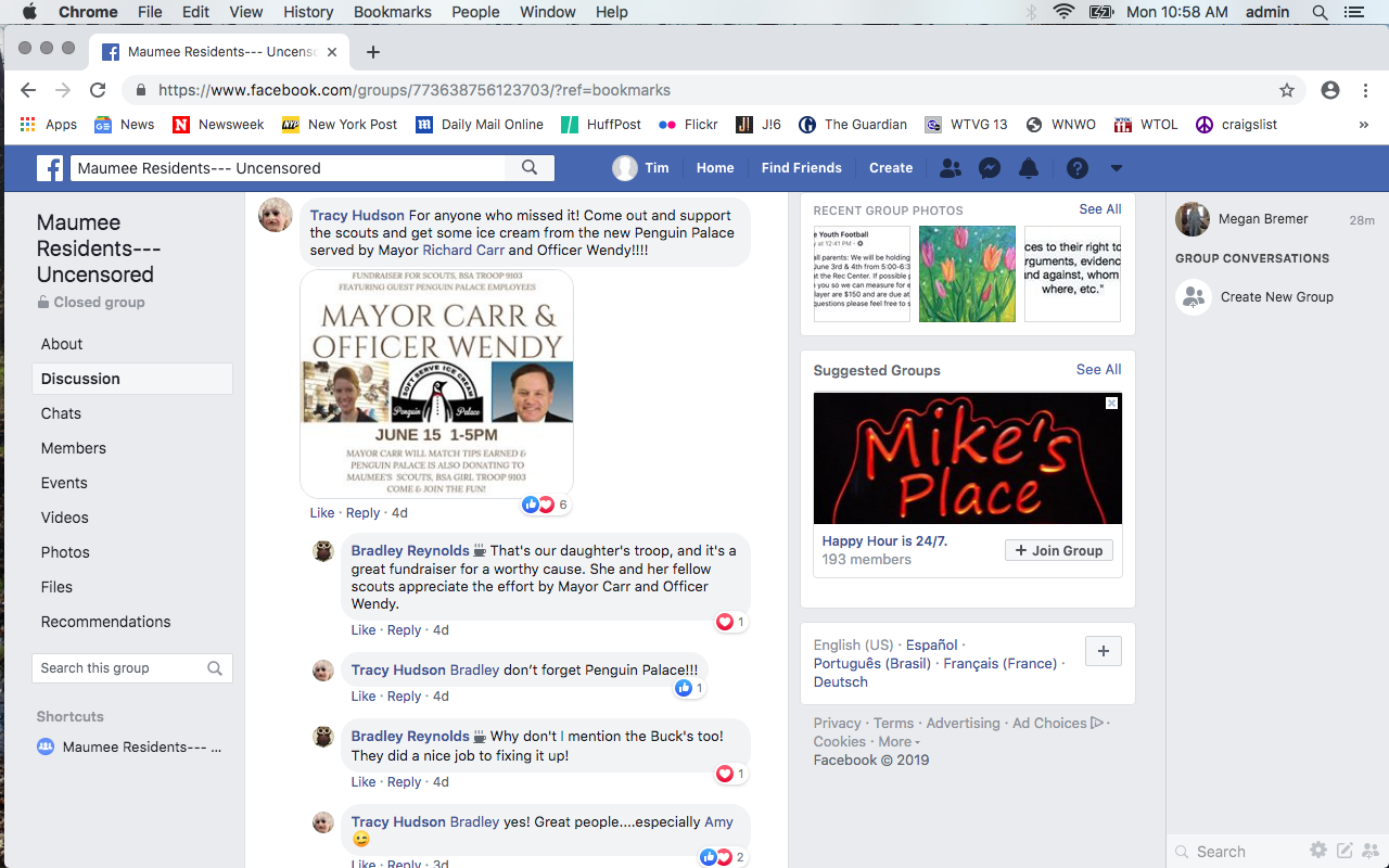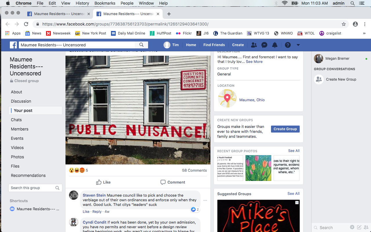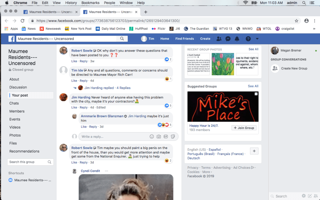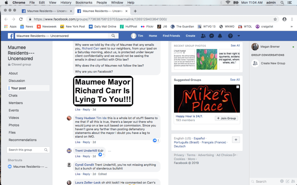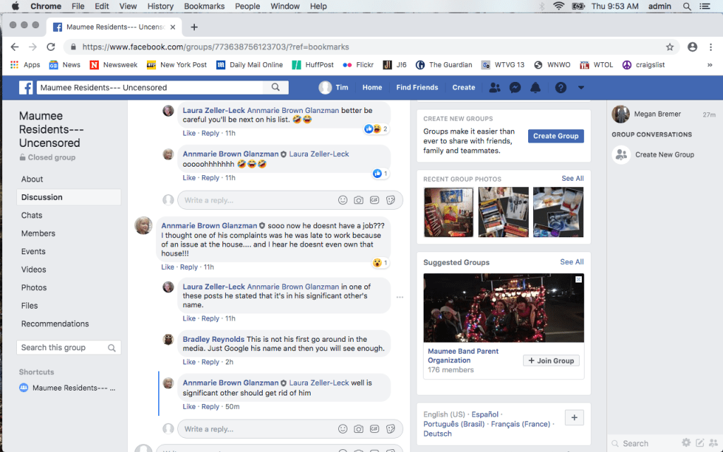 Screen Shot from closed Facebook group Maumee Residents—Uncensored