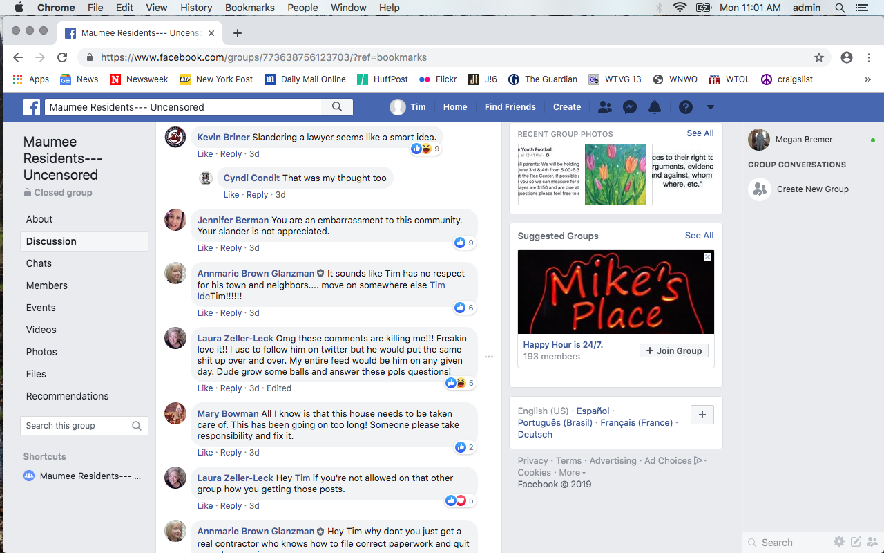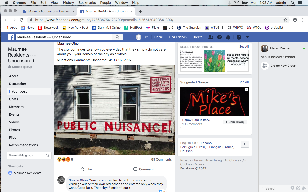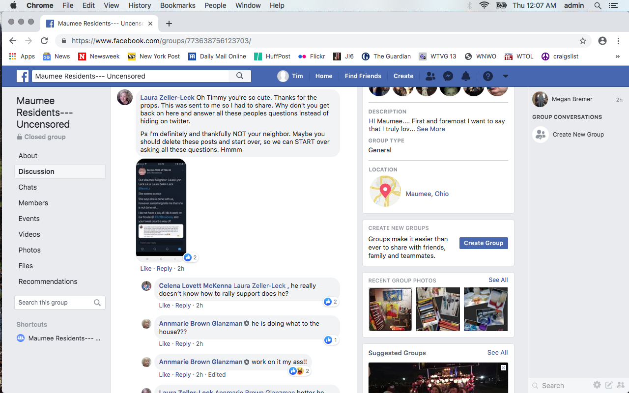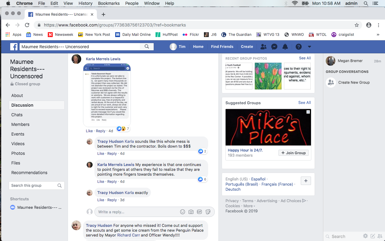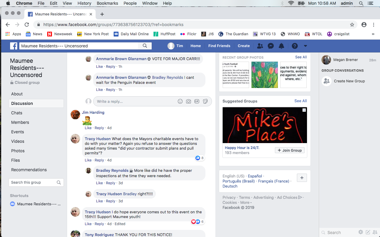 Screen Shot from closed Facebook group Maumee Residents—Uncensored