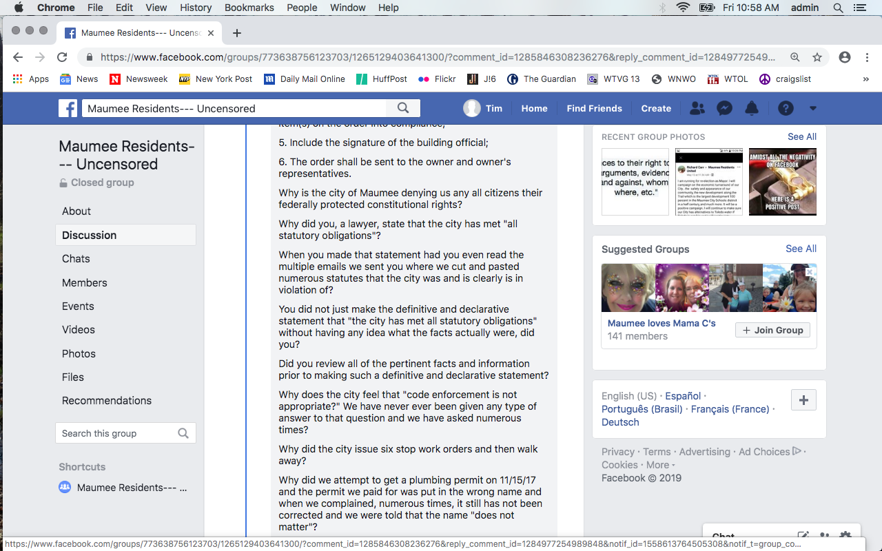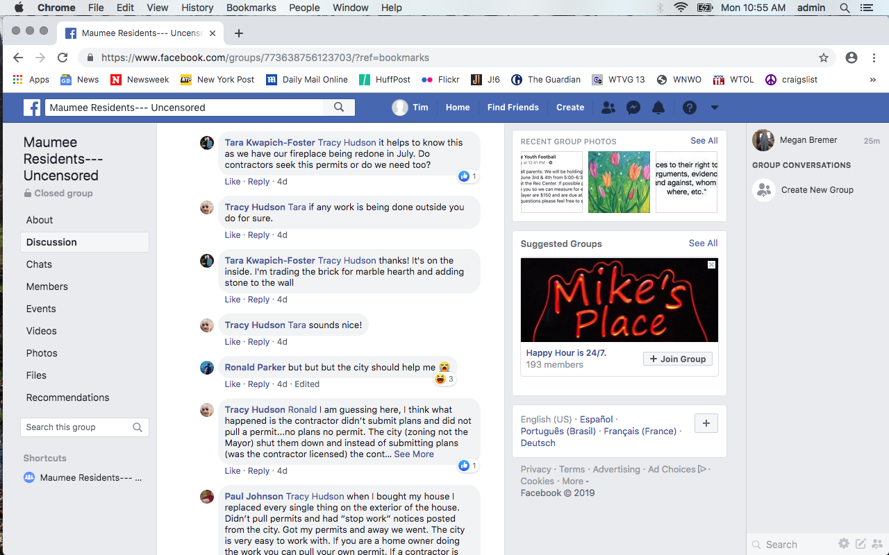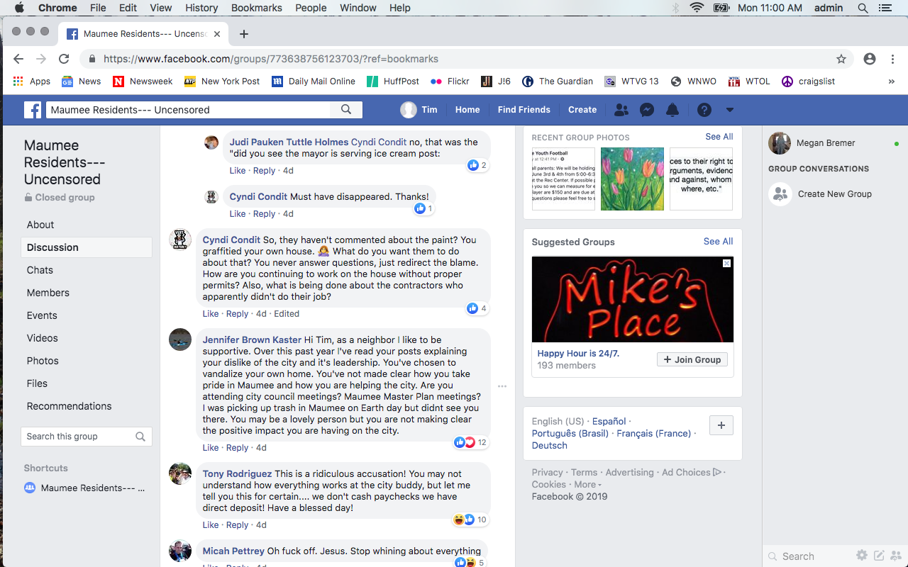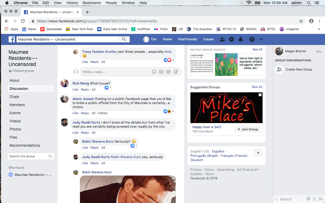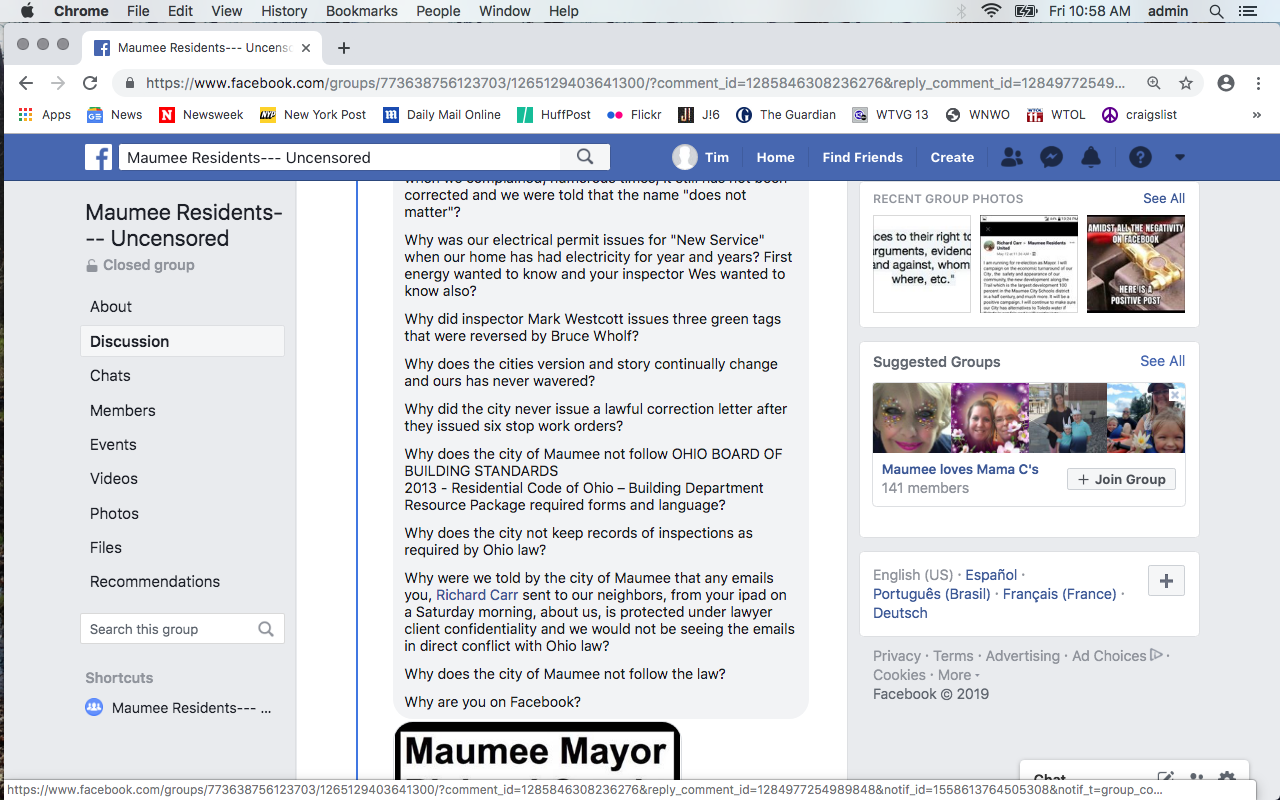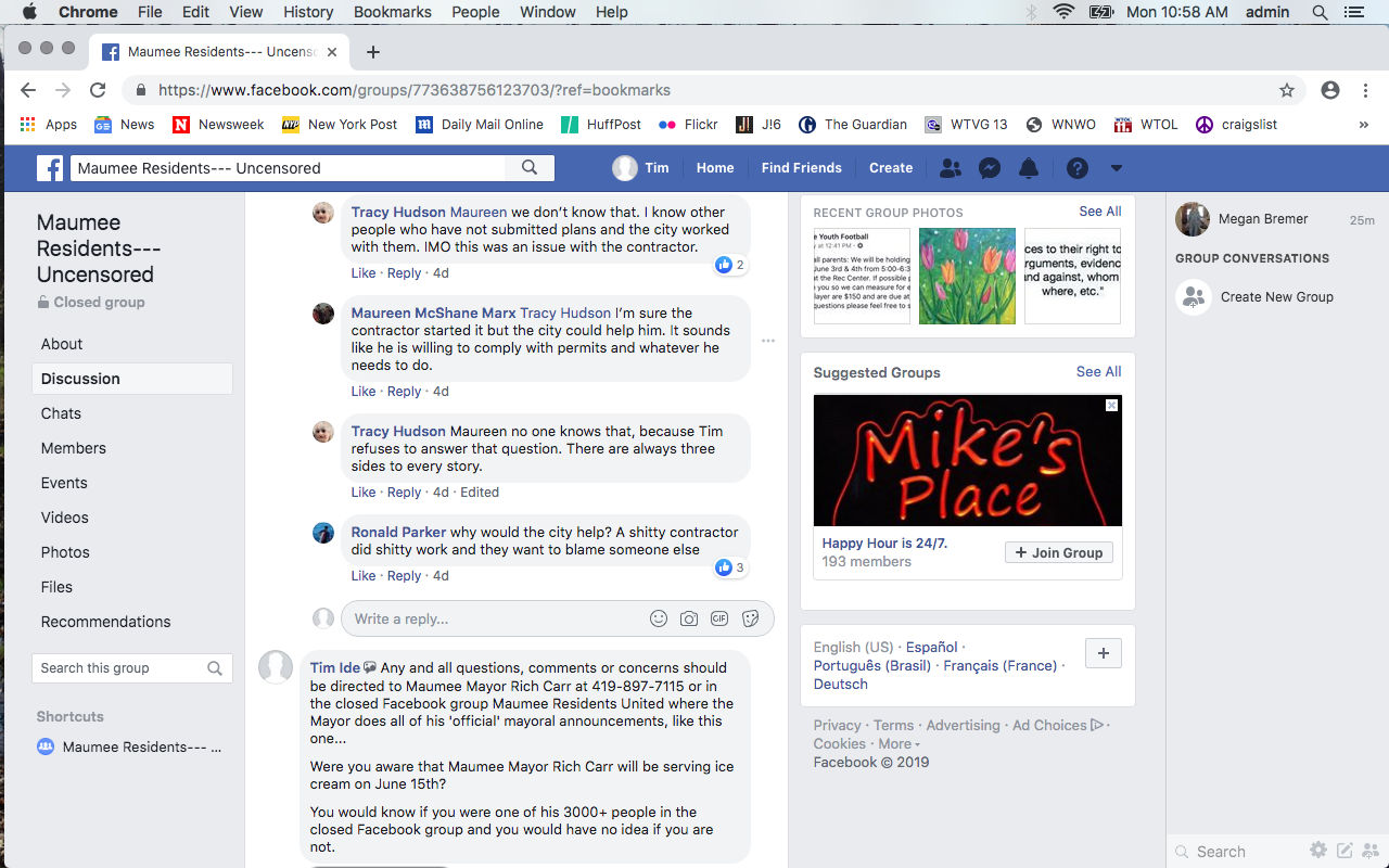 Screen Shot from closed Facebook group Maumee Residents—Uncensored