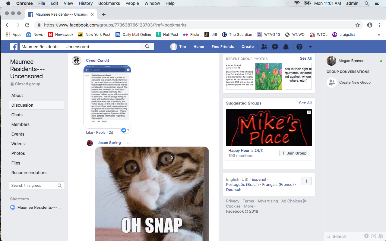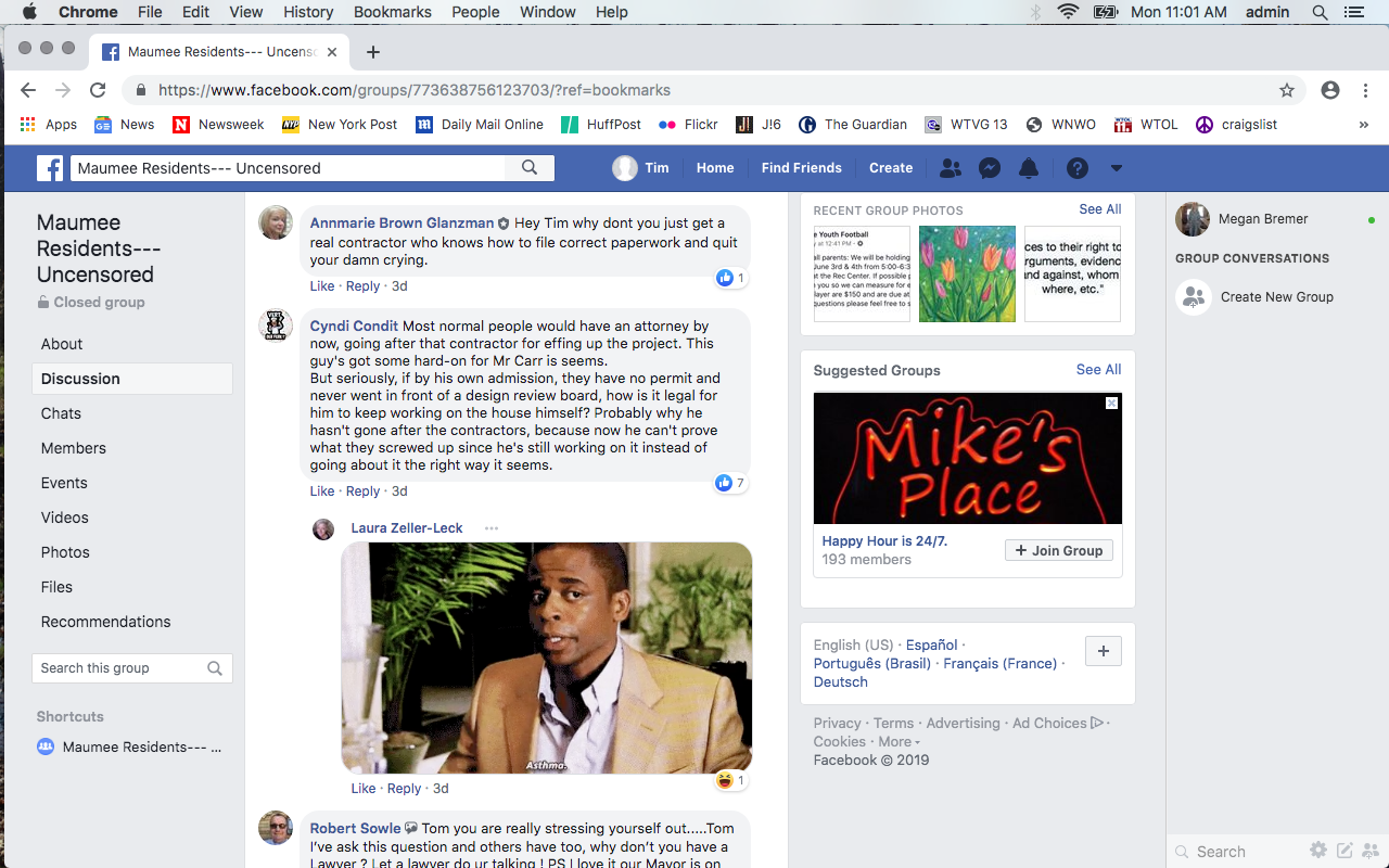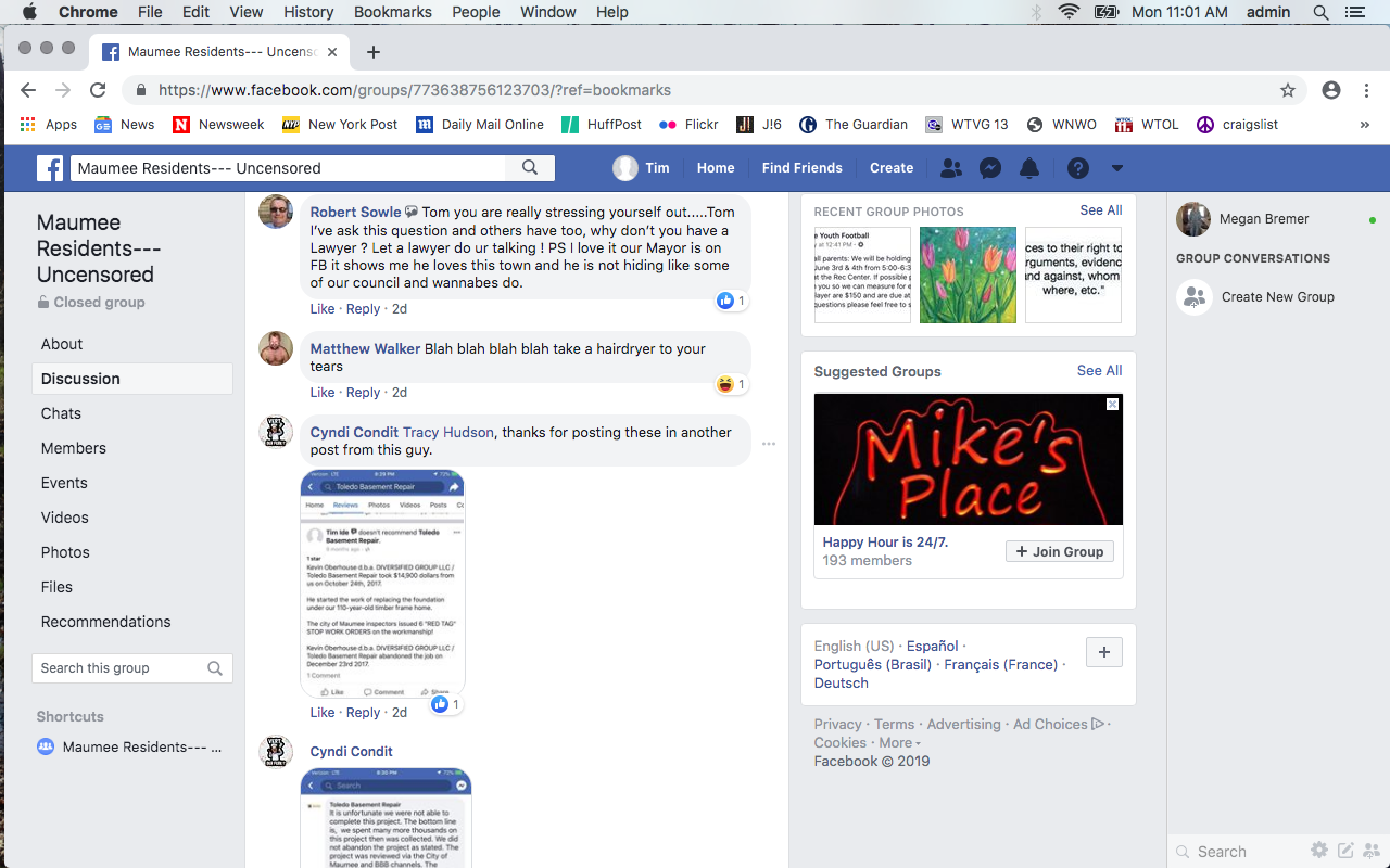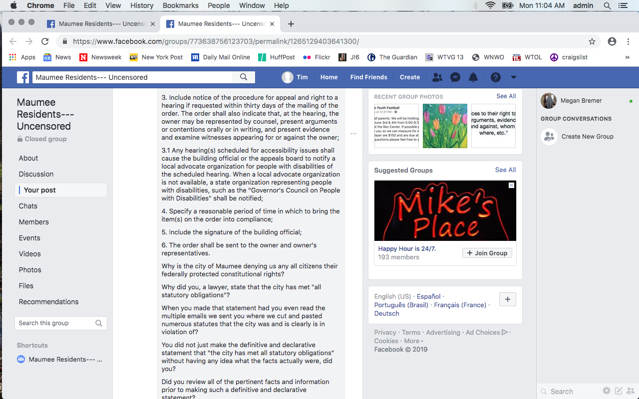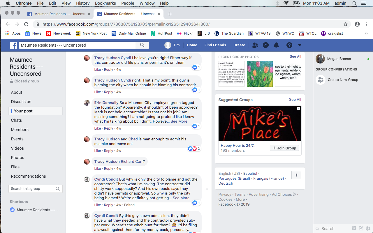 Screen Shot from closed Facebook group Maumee Residents—Uncensored