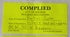 Visit to Maumee Building Permit office. At the front counter we spoke with Andy Glenn inquiring about the foundation permit and we were told that no permit had been pulled.